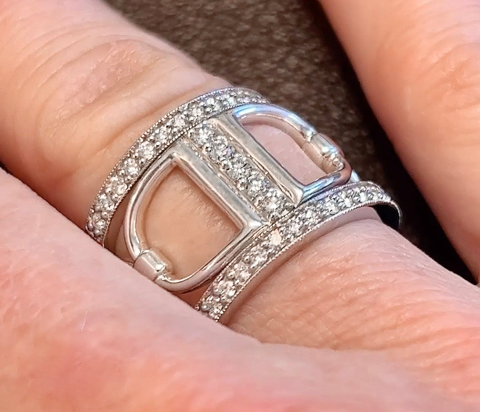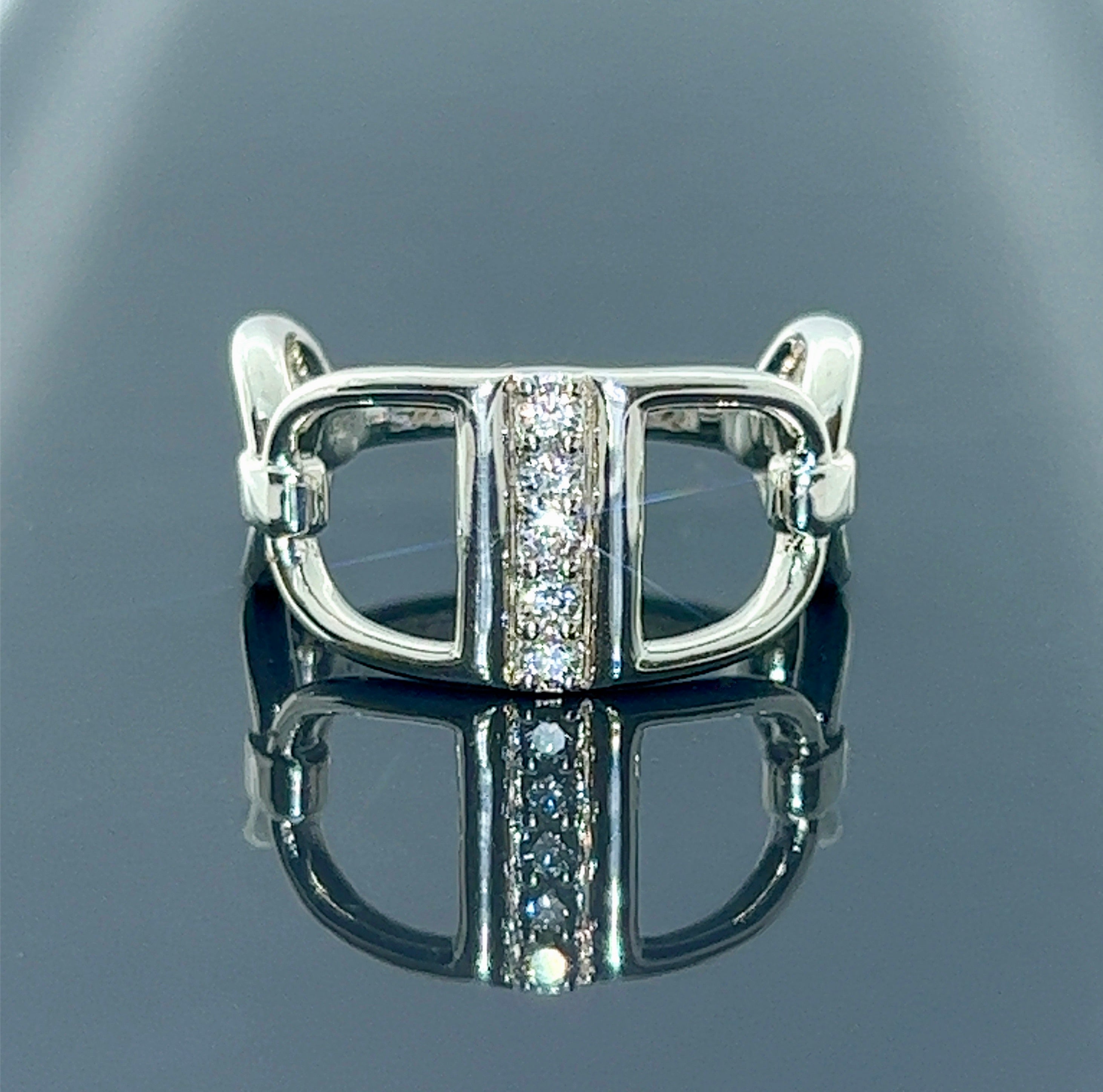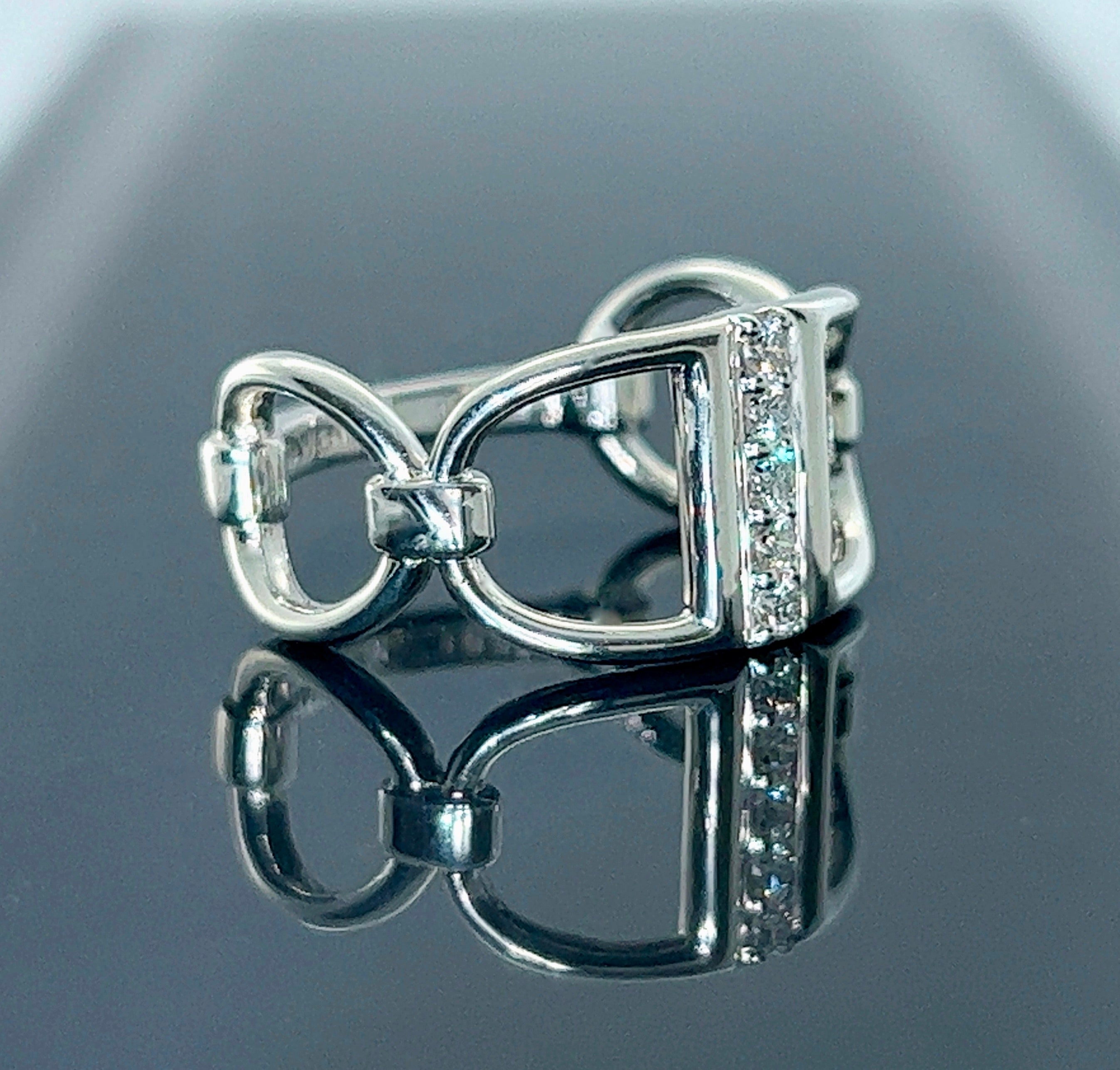 Meet the newest addition to our popular Point-2-Point Collection. A perfect union of classic and modern luxury, featuring five natural round brilliant diamonds set between traditional English stirrups and a snaffle bit. It's crafted from sterling silver with a high polish finish, designed for beauty and comfort.