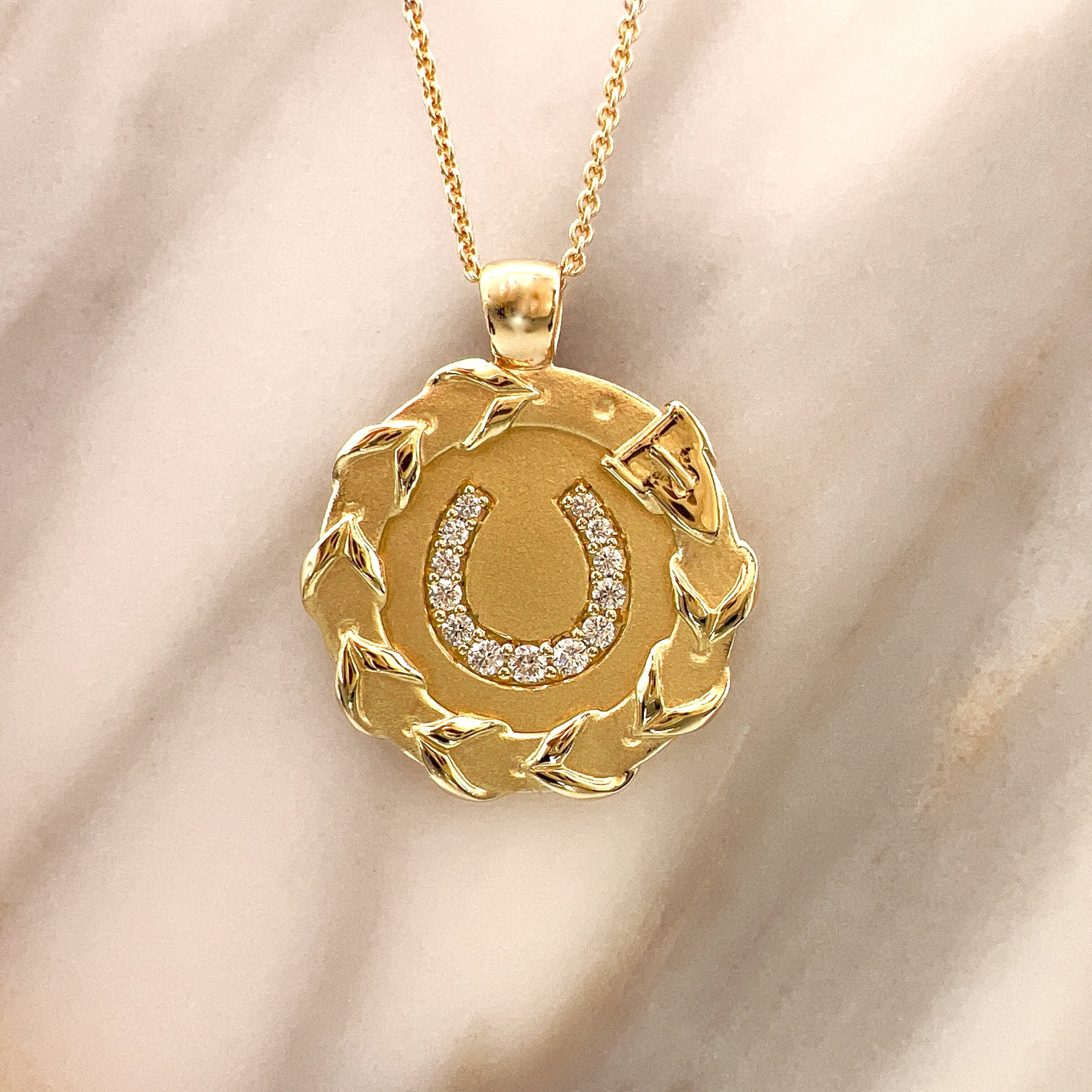 Elevate your jewelry collection with our diamond horseshoe pendant. An elegant blend of classic English equestrian details with unparalleled quality, a true heirloom.
