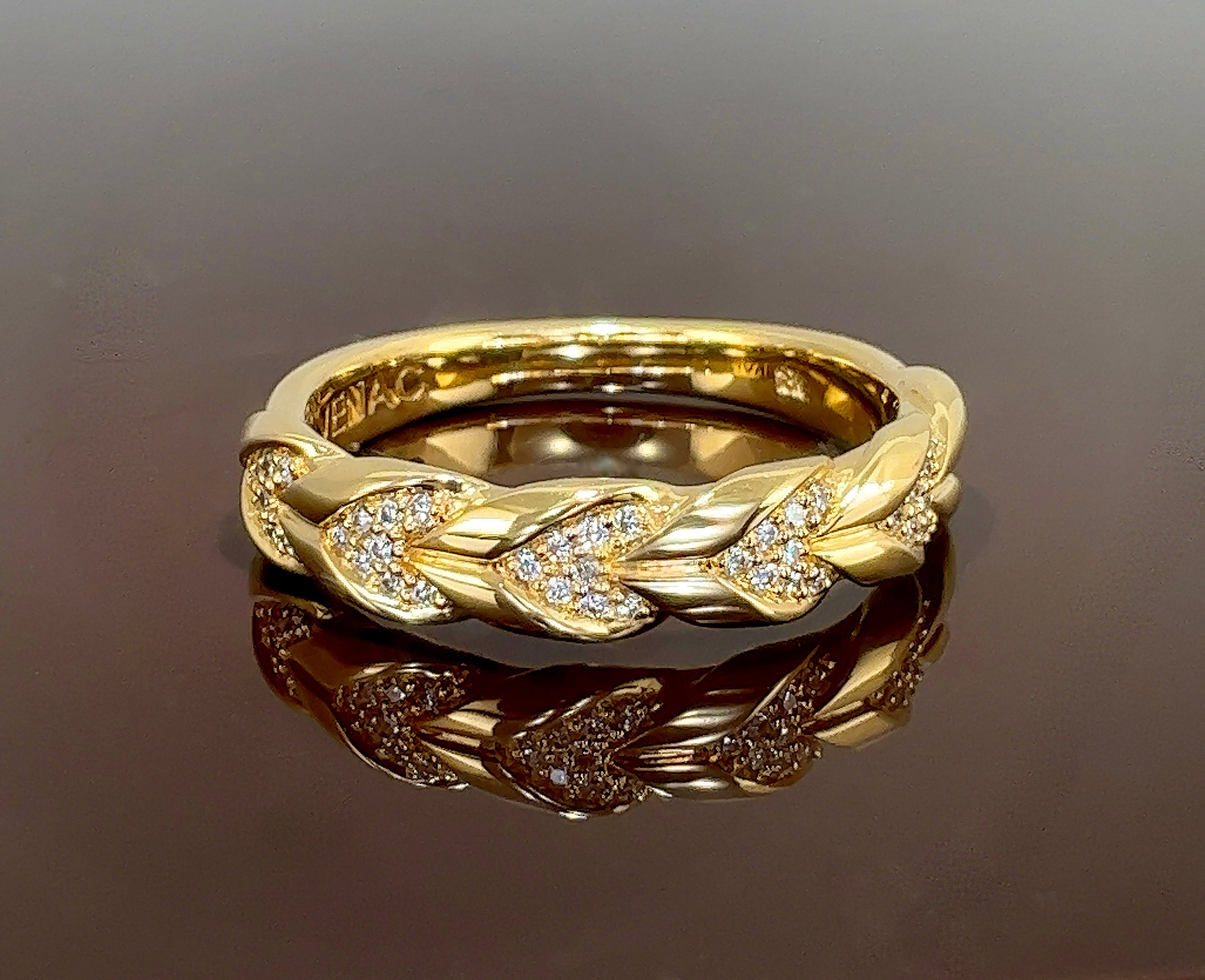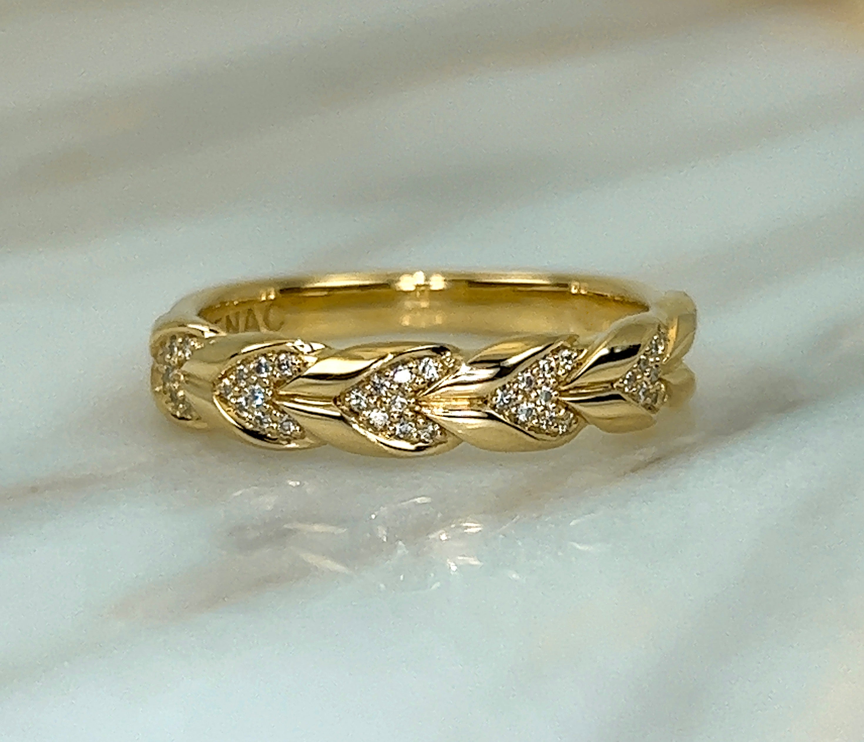 Introducing a beautiful addition to our Lace Rein Ring collection, the Slim Lace Rein Diamond Ring. This exquisite piece is crafted in 18 karat yellow gold, featuring delicate pavé diamonds meticulously set between English lace rein details. Our natural diamonds are hand-selected for their exceptional cut and quality, ensuring a truly brilliant sparkle.