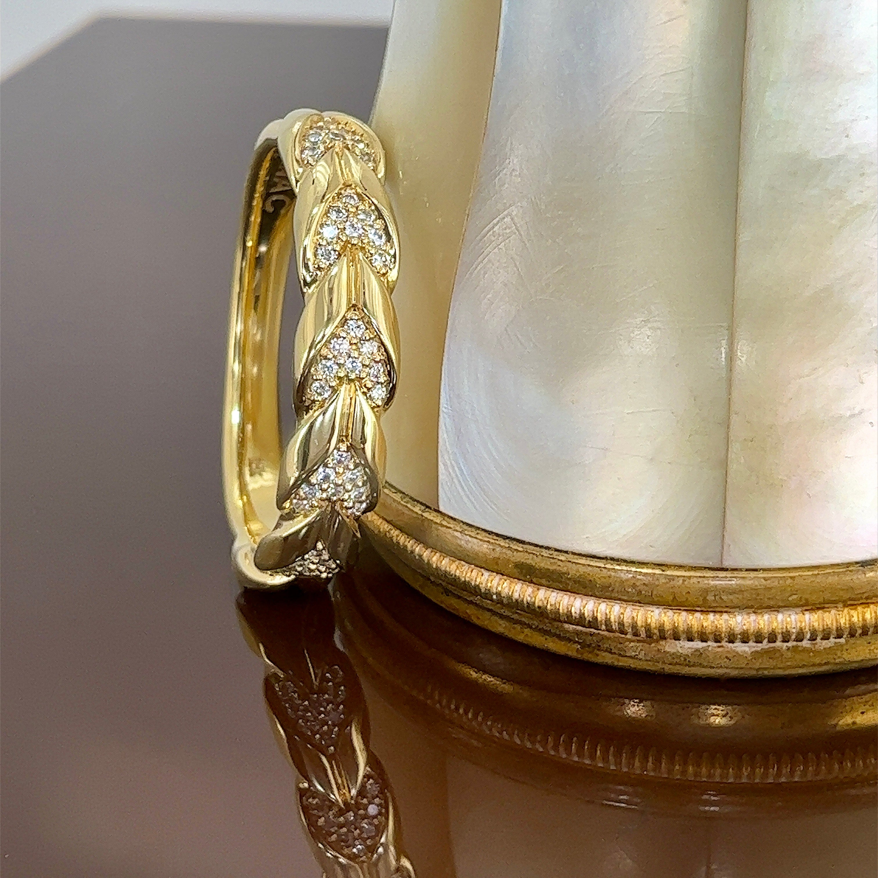 With its slim profile, this diamond stacking ring offers a subtle yet eye-catching statement. It's perfect for wearing alone, as a stunning addition to your ring stack, or even as a unique wedding band. Elevate your luxury jewelry collection with this unique blend of equestrian elegance and modern sparkle.