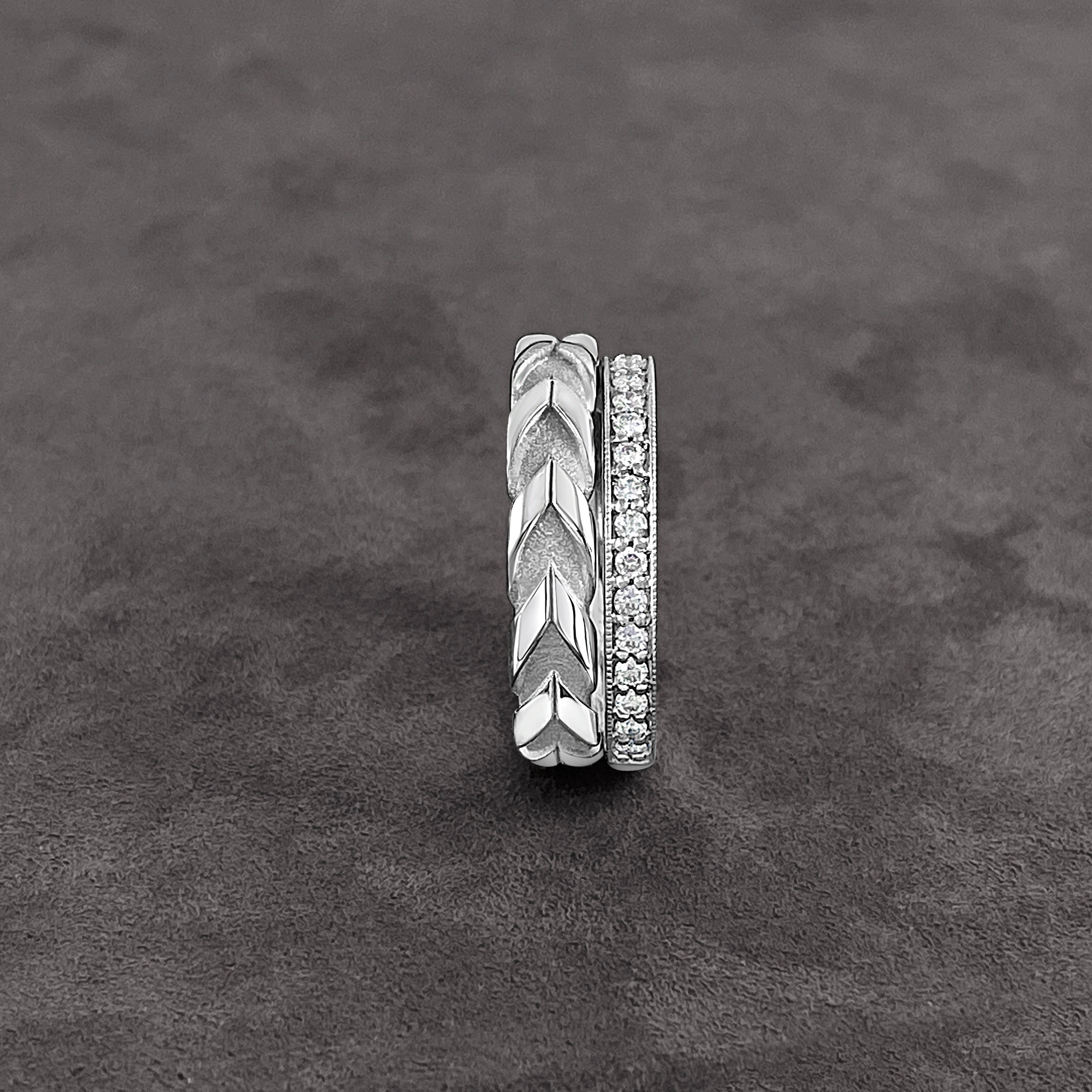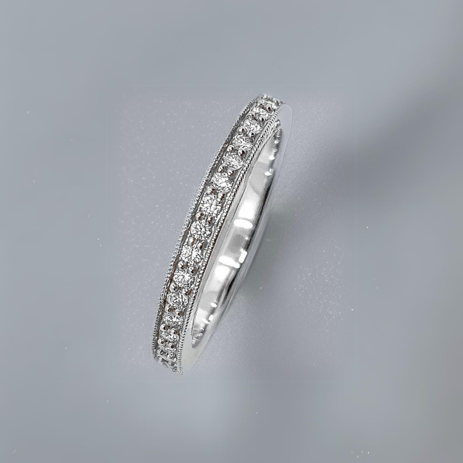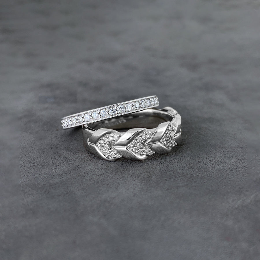 A wear with everything, timeless diamond stack ring. Delicate milgrain detail surrounds the perfectly matched brilliant diamonds. These diamonds are hand selected for the cut & quality to create the most sparkle. Beautiful paired with our Lace Rein Rings, this ring adds the sparkle to any combination.